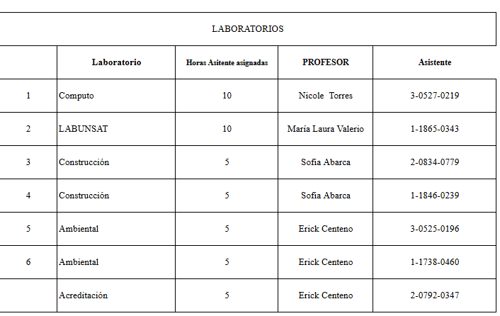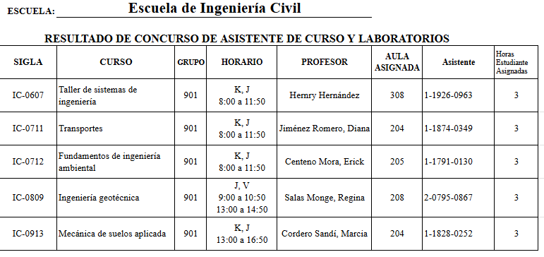 Resultados del concurso de asistente de curso y laboratorio